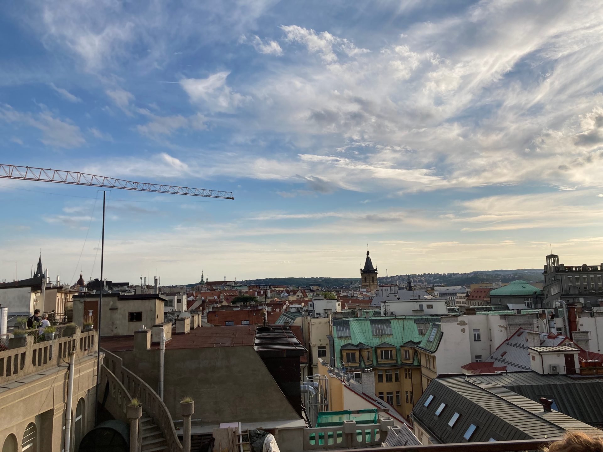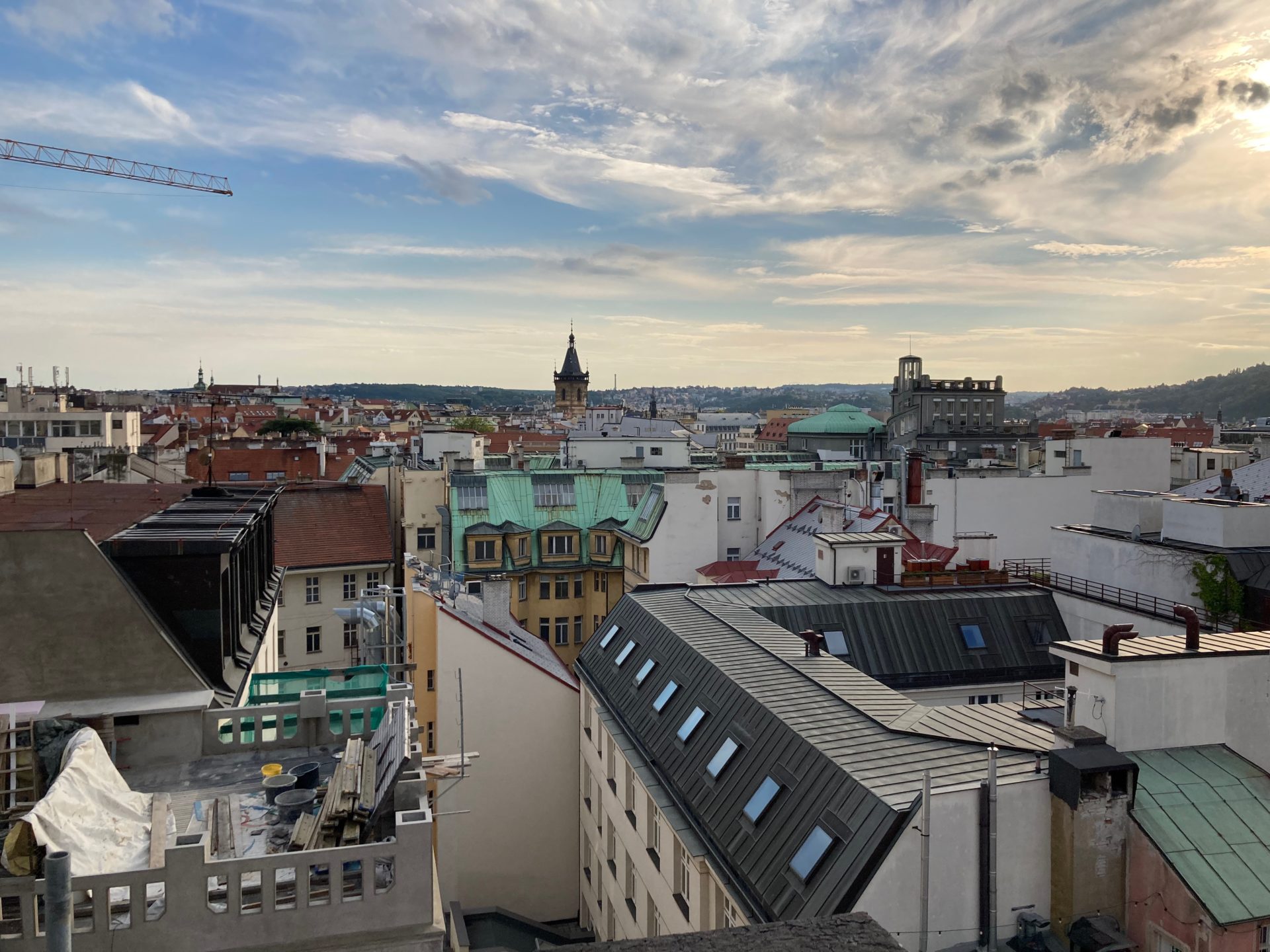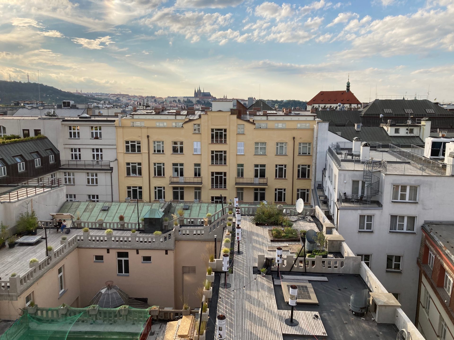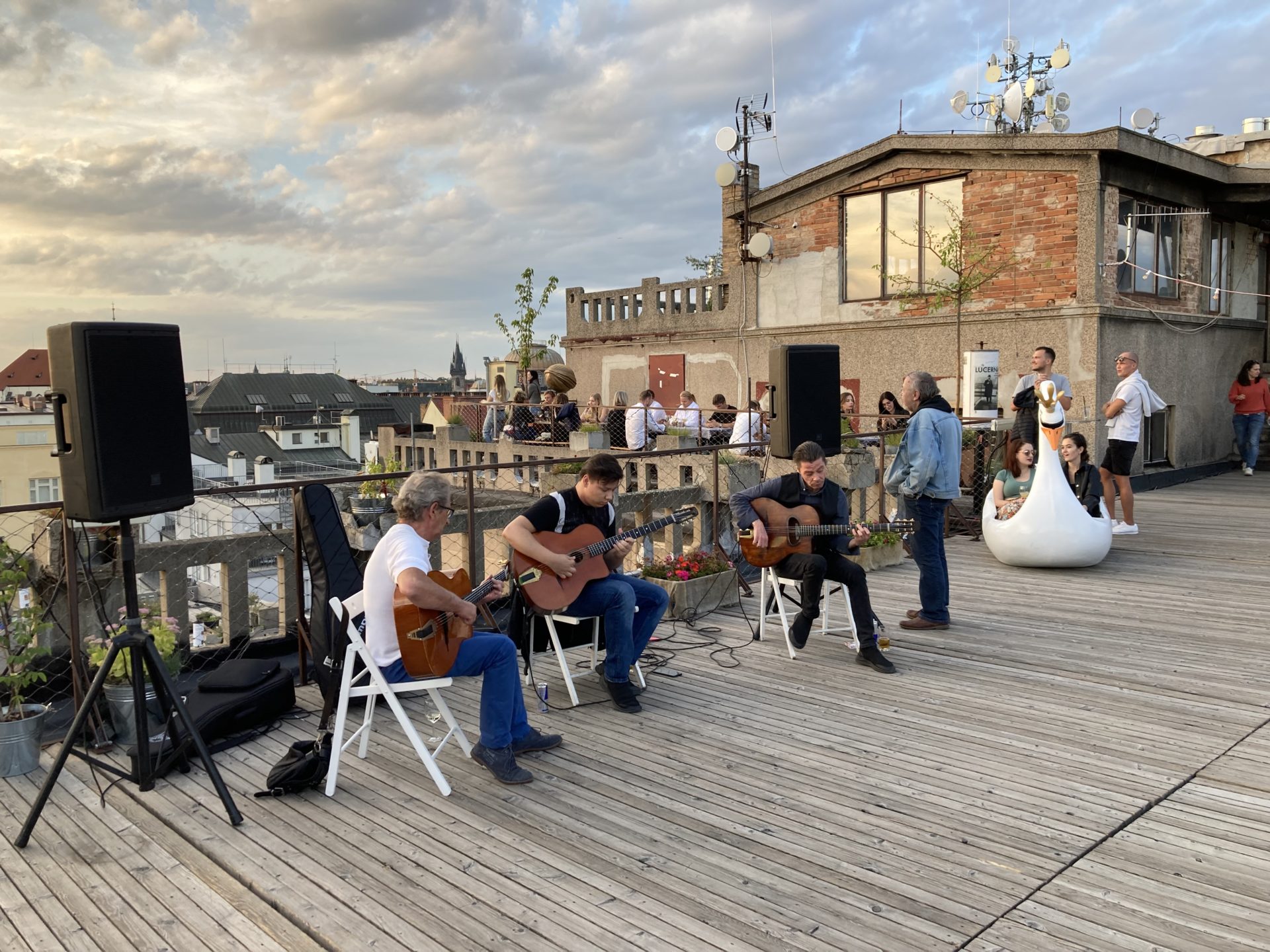 Ondřej Kobza rented the roof of Lucerna from the Havel family. He carried out basic repairs to the roof terraces and covered an area of 1,000 square meters with larch planks – the terraces now resemble an ocean liner sailing in a sea of other Prague roofs.