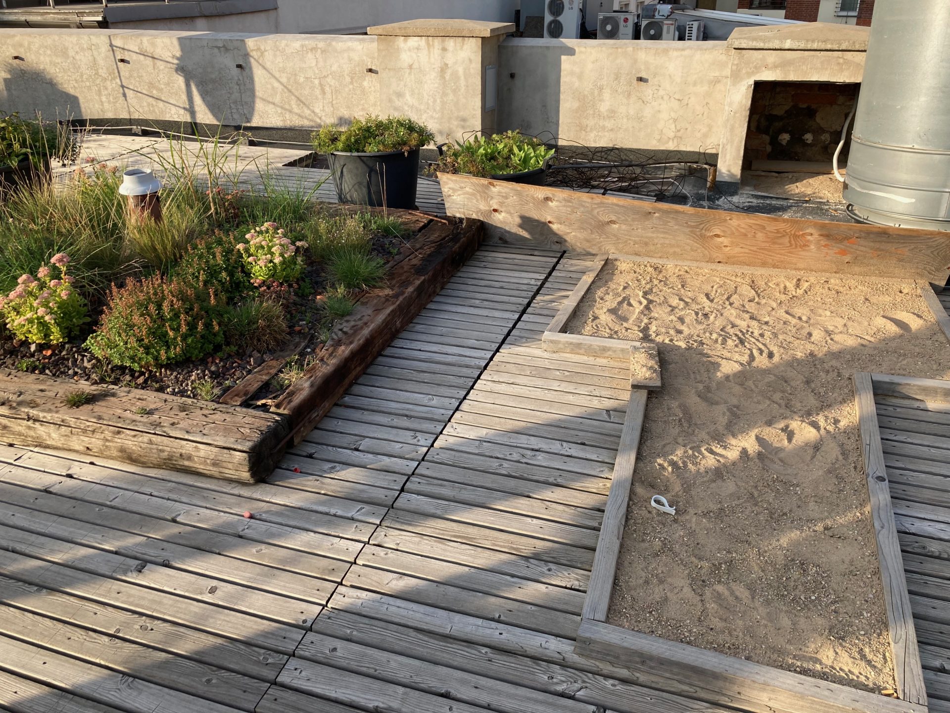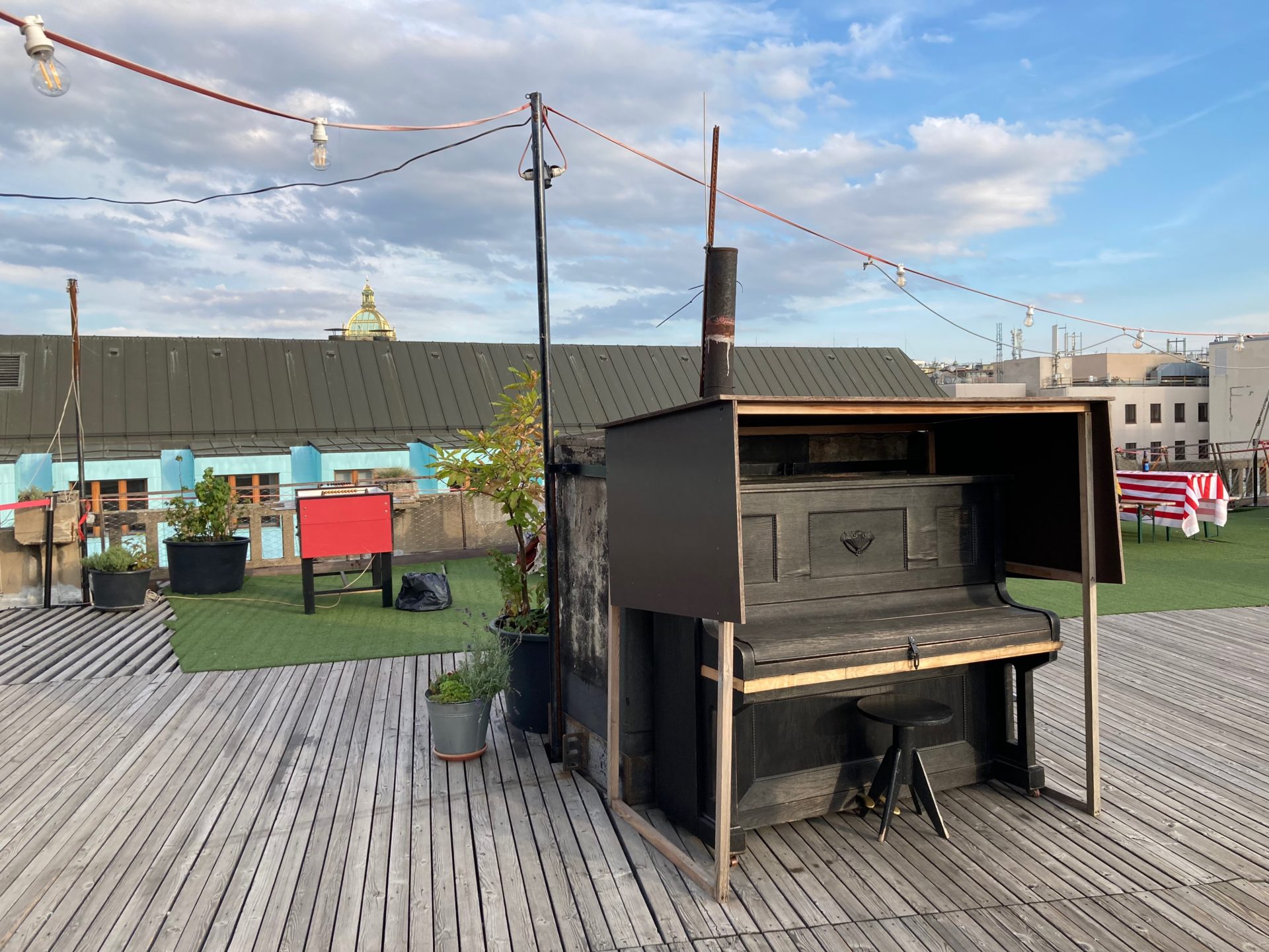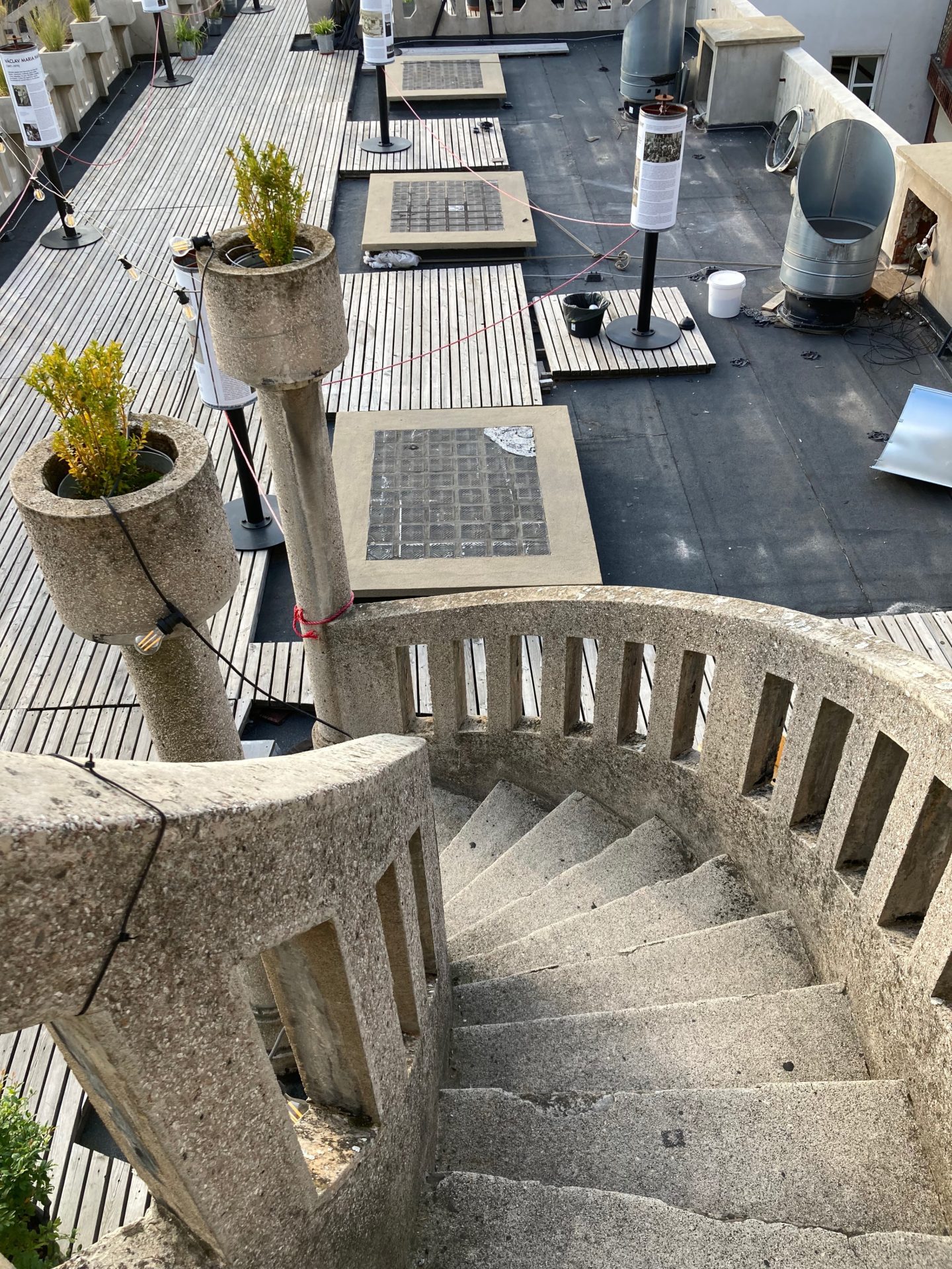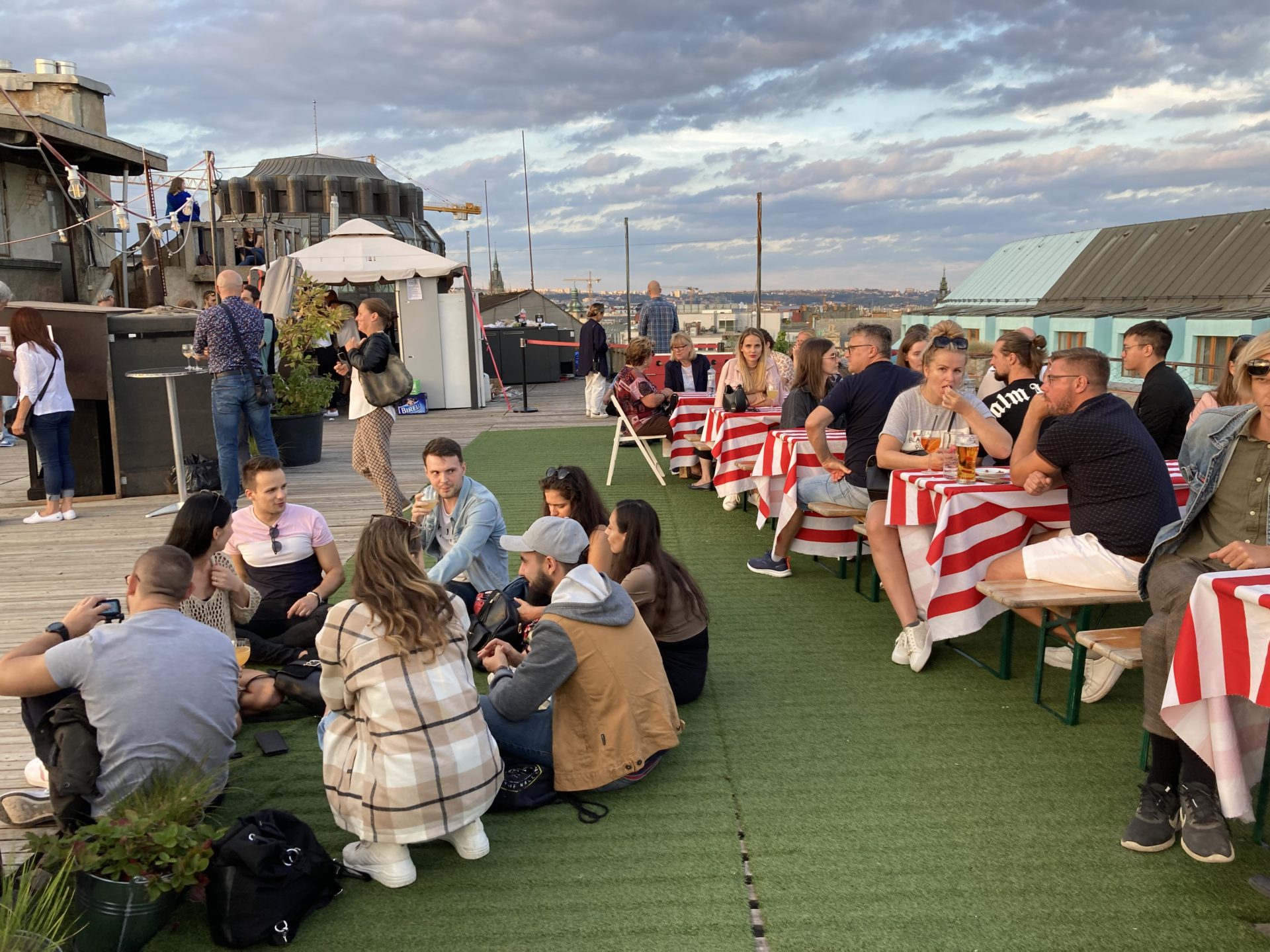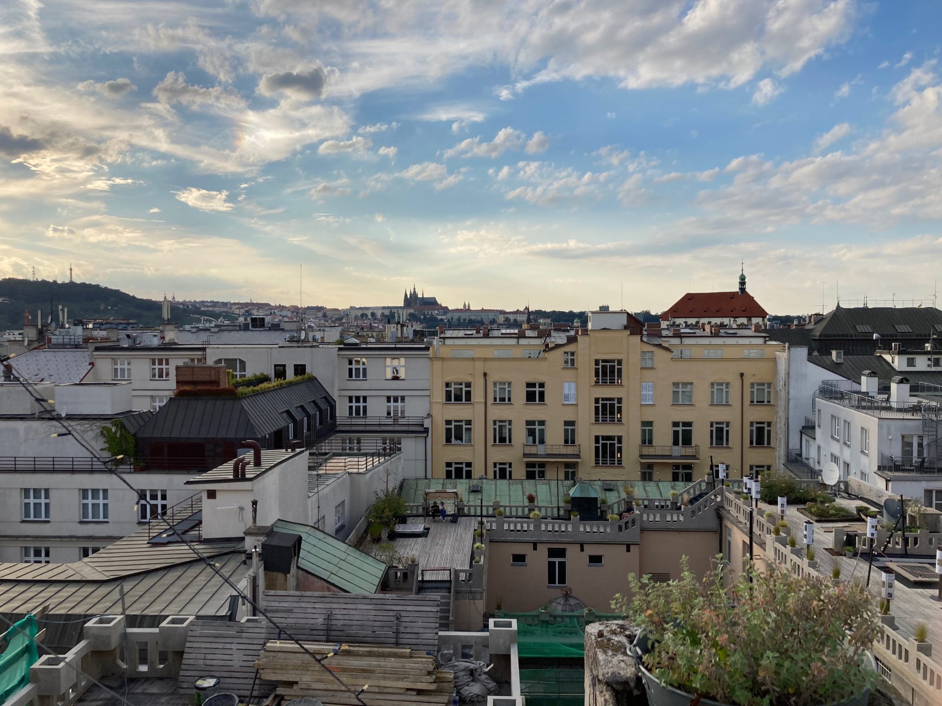 Ondřej Kobza rented the roof of Lucerna from the Havel family. He carried out basic repairs to the roof terraces and covered an area of 1,000 square meters with larch planks – the terraces now resemble an ocean liner sailing in a sea of other Prague roofs.