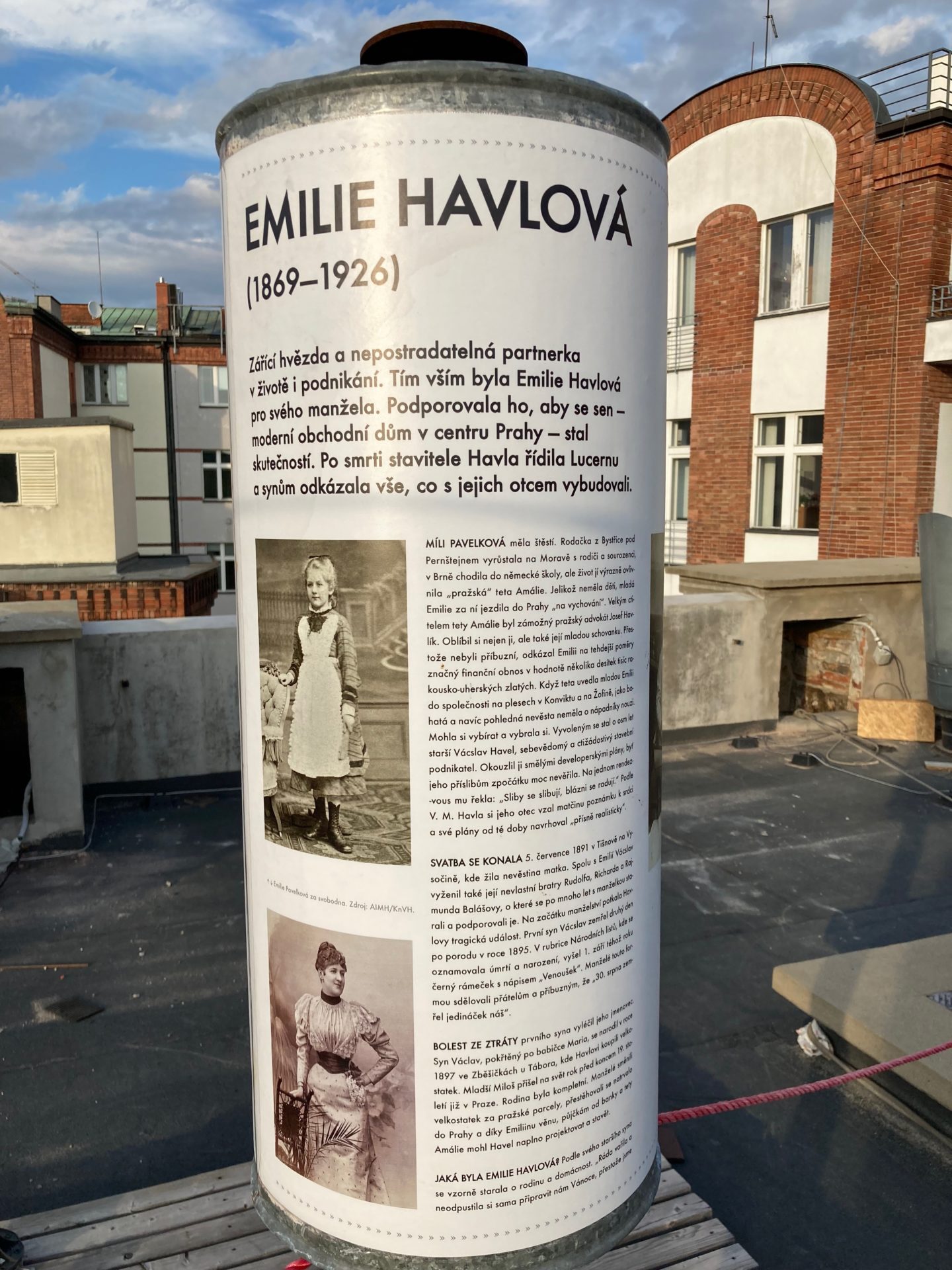 Emilie Havlová was not only a great wife to her husband, but she was also his business partner and a very good manager of the Lucerna project. And she is even the author of the name of the palace. When she first saw the facade design, she said it looked like a big lantern.