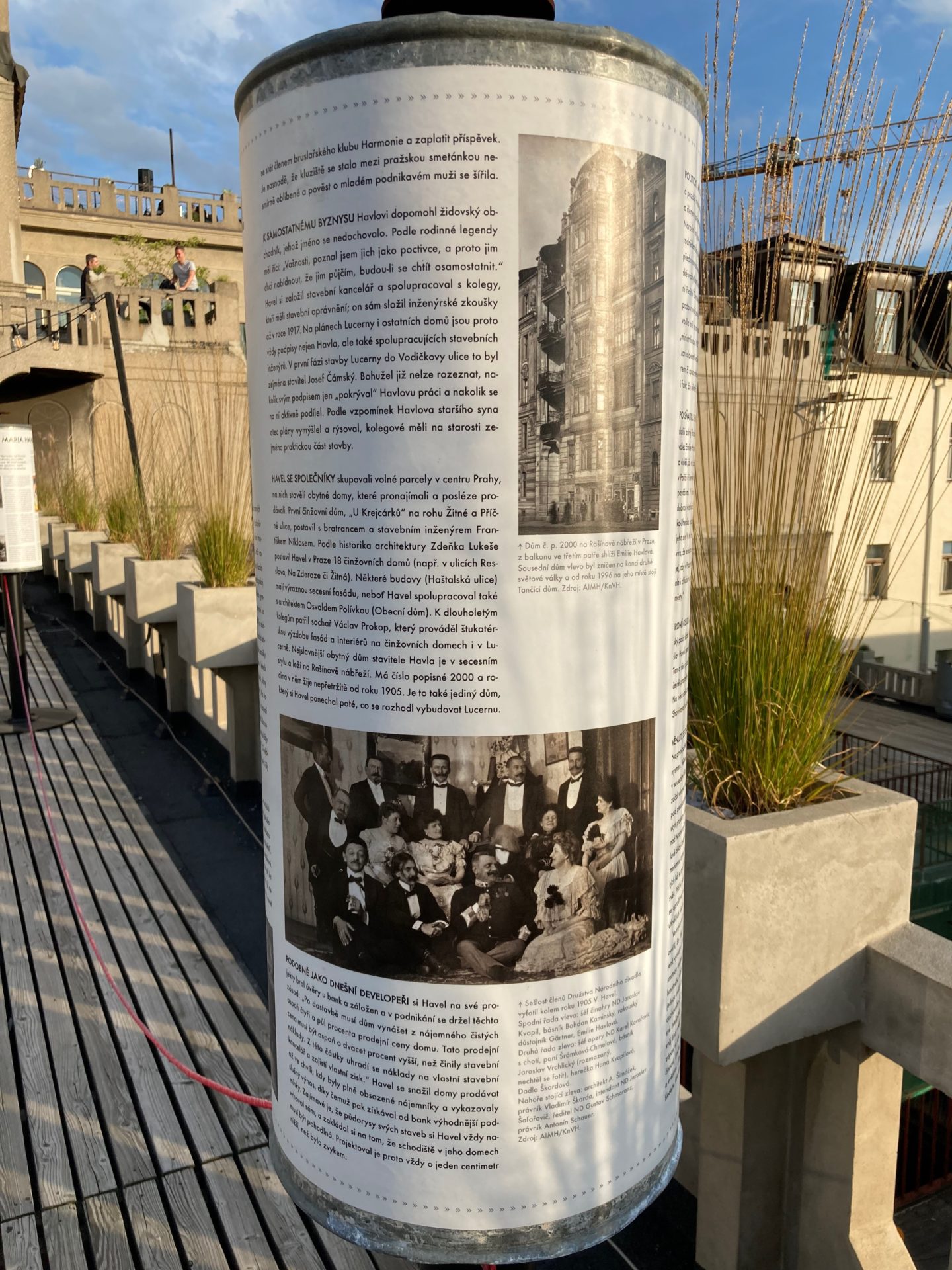 The Lucerna is probably the first building in Prague with usable terraces; its flat roof was a significant architectural act at the beginning of the 20th century. The terraces were originally intended to be used as a venue for social events, but this was only the case at the beginning of Lucerna’s existence.