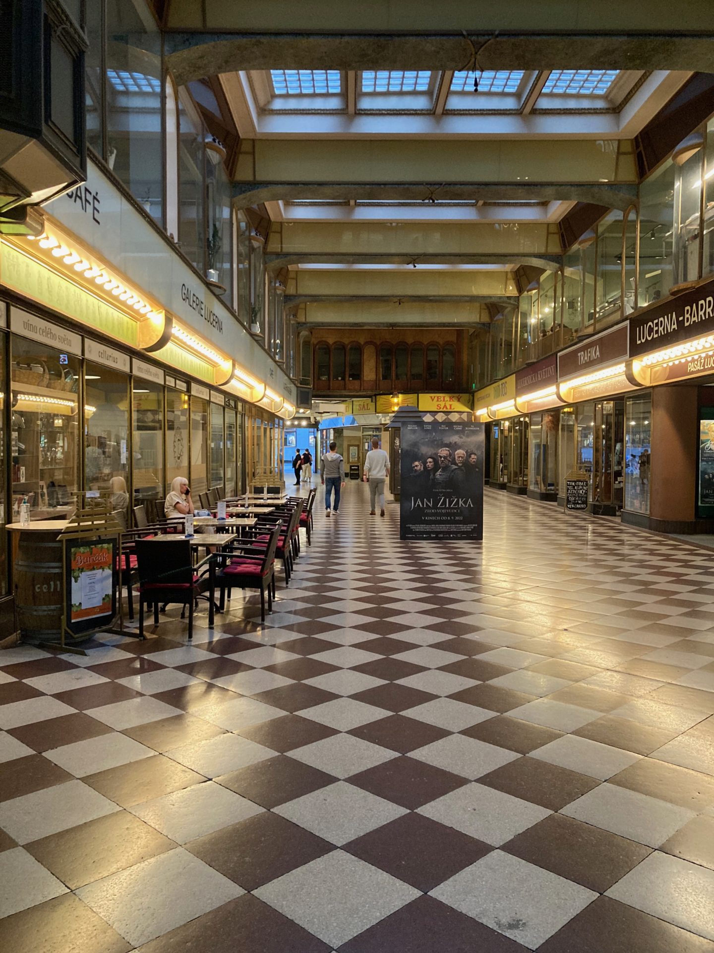 Lucerna (“lantern”) was built at the beginning of the 20th century by Vácslav Havel, the grandfather of the later President Václav Havel. He was inspired by the buildings in Berlin, Paris, and London – he also wanted to build a grandiose project of a house with large passages in Prague.