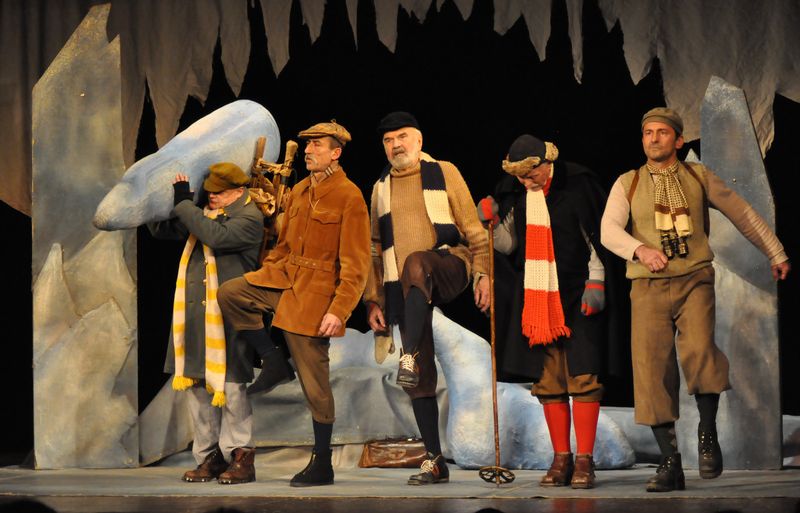 In October 2025, the play Conquest of the North Pole had its 1000th performance. A short excerpt from the script documents the principle of success of “theater for people who paid attention in school”. When the expedition arrives at the North Pole, Zdeněk Svěrák says: “Now you will see something. Now pay attention.” And they set off towards the sign on the stage that marks the Earth’s pole: “I’m going north. Normally I go north…” The moment they cross the sign: “And now I’m going south!”
