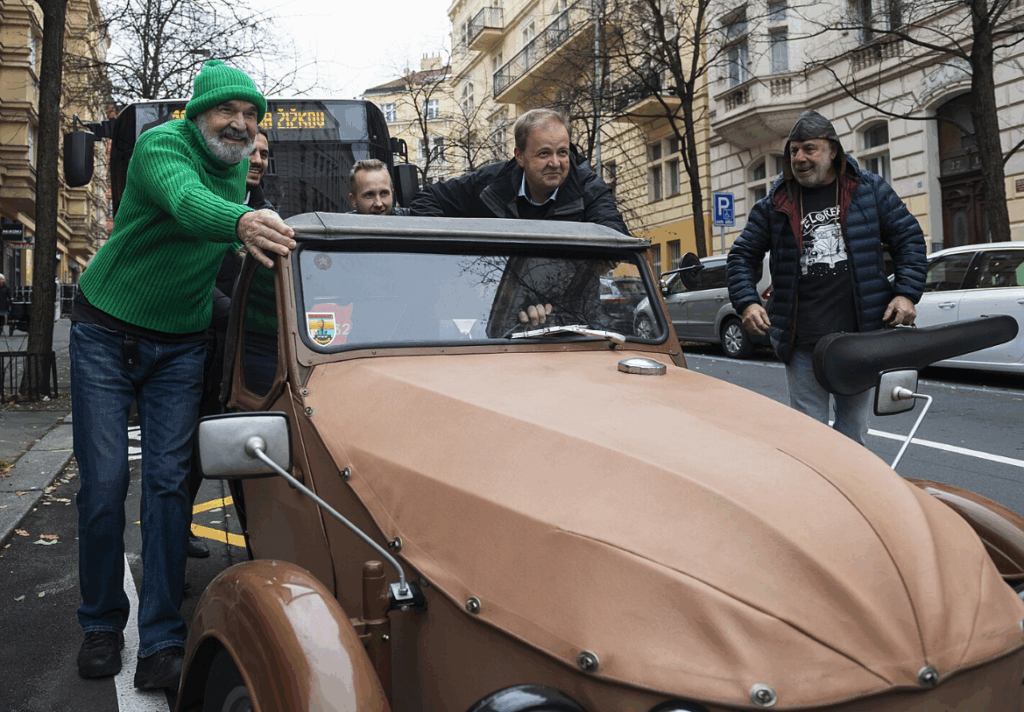The fact that viewers share their sense of humor is also evidenced by the fact that, since November 2021, one bus stop near Náměstí Jiřího z Poděbrad has been named “At Prdlavka”. And we have the duo Svěrák – Smoljak to thank for that. Their movie Vrchní, prchni (Run, Waiter, Run) tells the story of a bookseller who earns extra money from guests by going around Prague restaurants in a dark suit as a fake head waiter. As a poor bookseller, he has no other car than a Velorex. (A Velorex was a three-wheeled cart designed for the needs of people with disabilities. It had a frame made of tubes and a canvas body. The carts were manufactured between 1951 and 1973; today, it is hard to imagine that anyone was willing to sit in one.)